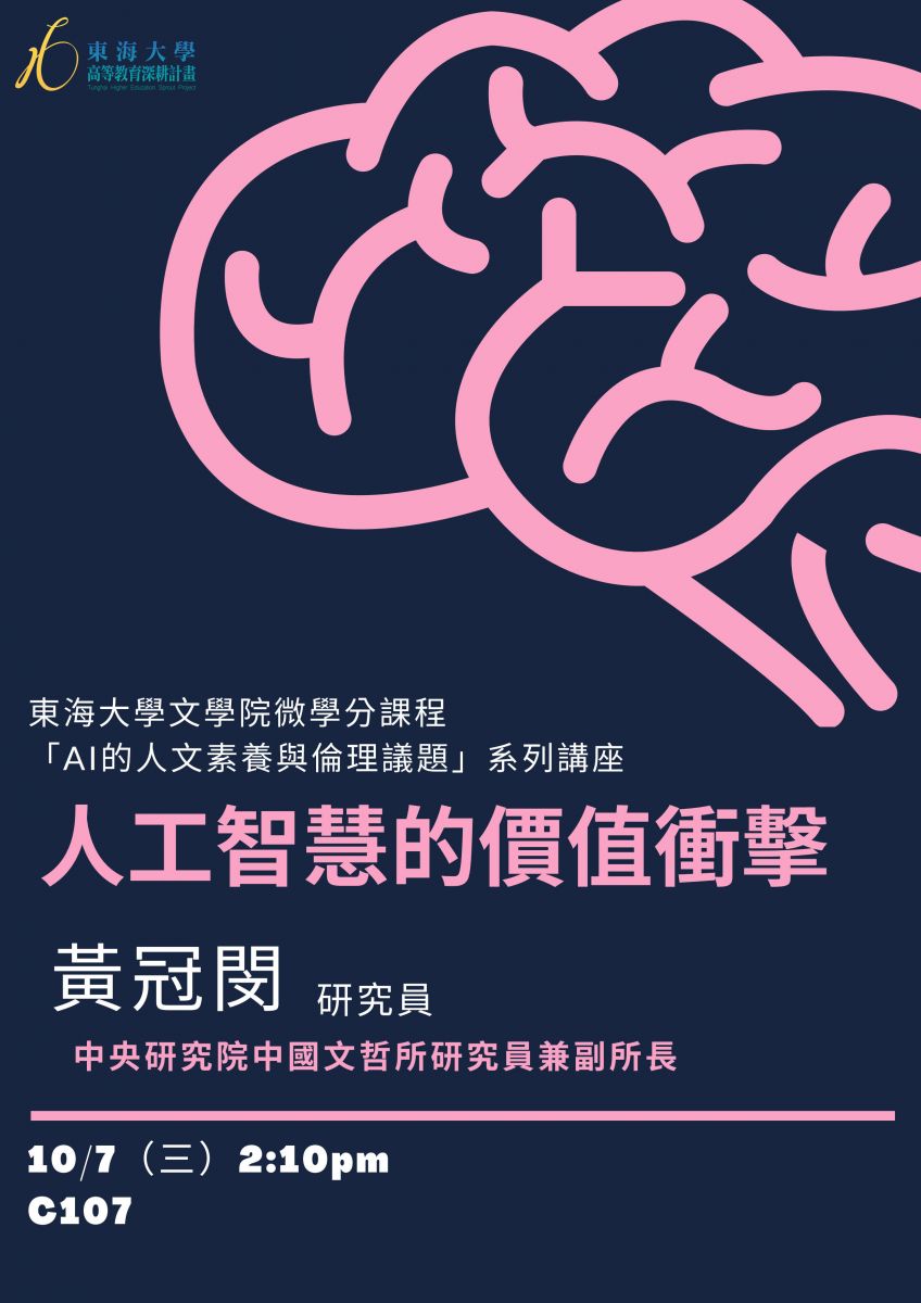 東海大學文學院--活動訊息-AI的人文素養與倫理議題系列講座(二)