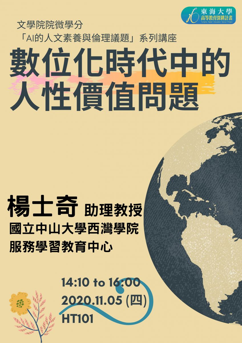 東海大學文學院--活動訊息-AI的人文素養與倫理議題系列講座(六)